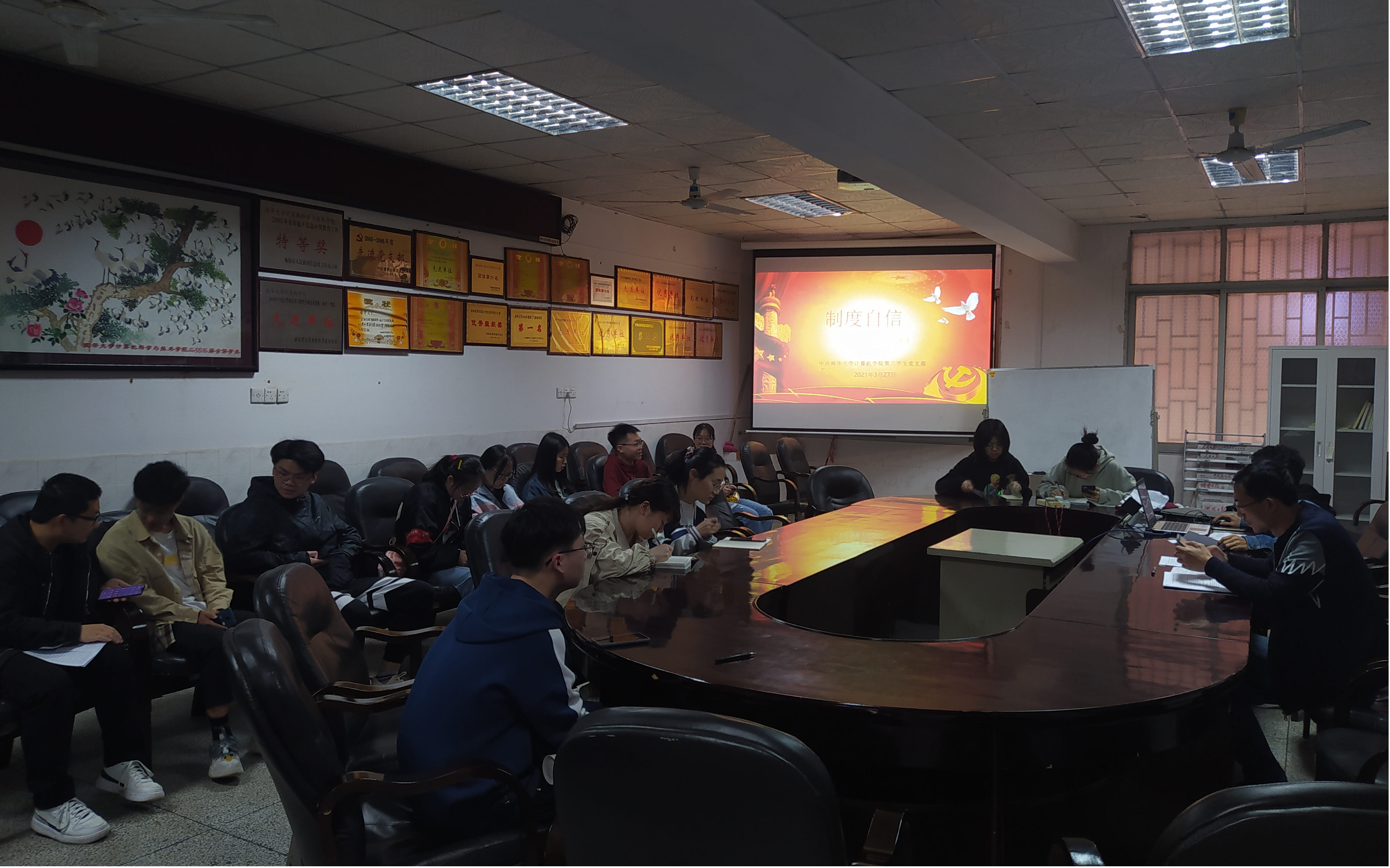 3月27日下午,计算机学院学生第三党支部在八教113开展了“深入学习全会精神,坚定四个自信”主题党日活动。支部书记陈辉同志参会,支部10名党员,12名预备党员到会。