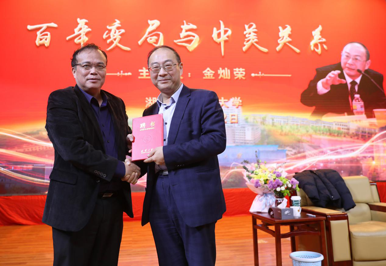 正值全校上下深入学习贯彻党的十九届五中全会精神和习近平总书记考察湖南重要讲话精神之际,我校特邀中国人民大学国际关系学院教授、教育部长江学者特聘教授、中国未来研究会理事长金灿荣教授来校作专题报告。