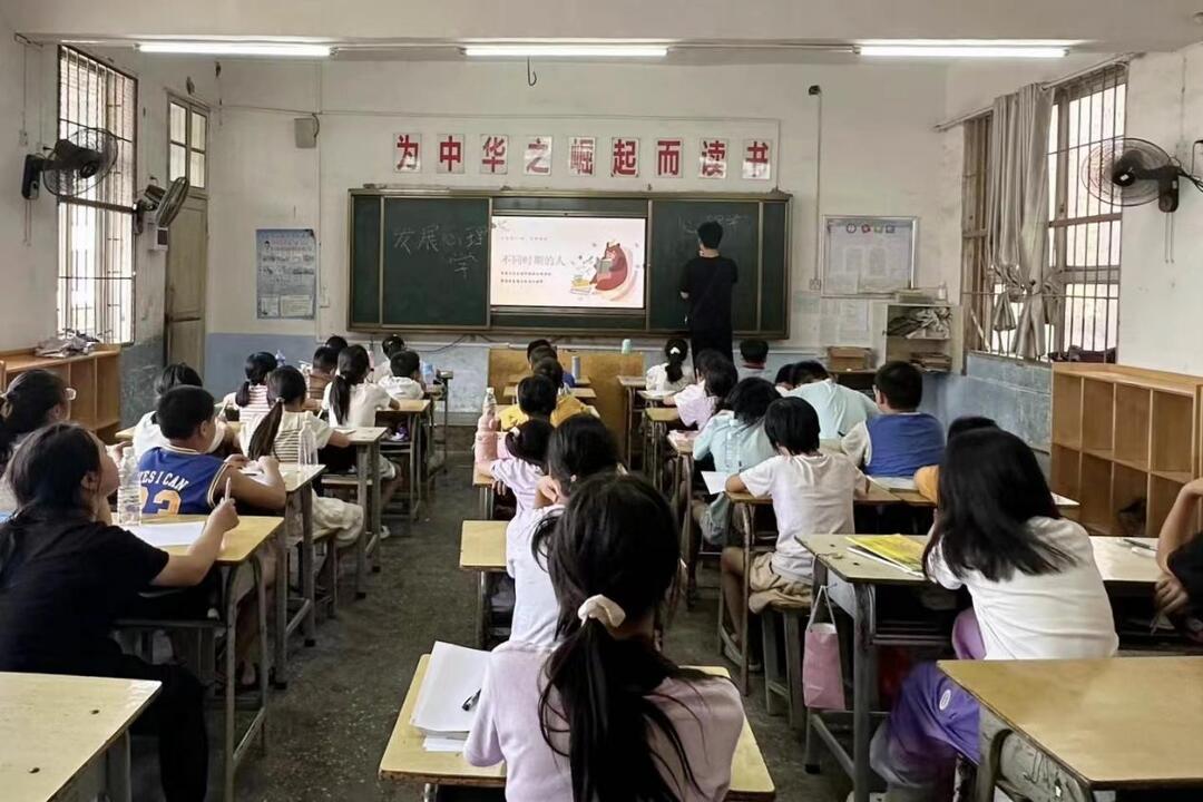 “先锋领航”暑期实践队通过通俗易懂的课程、一系列实践操作和互动游戏让同学们学习到不同的心理健康知识,引导孩子们正确认识自我、管理情绪。(黄文芝 唐隆 王逸韵)