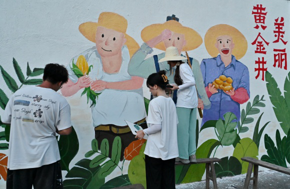 7月11日,走进湖南省隆回县金石桥镇黄金井村,一幅幅“党建引领、乡村振兴”“不忘初心、牢记使命”“美丽黄金井”等生动形象的彩绘墙画眼入眼帘,让乡村面貌焕然一新,吸引过往群众驻足欣赏。