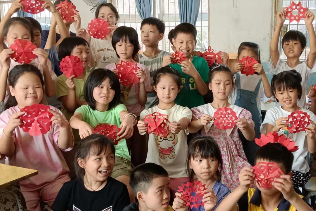 在支教活动过程中,志愿者们设计了一系列非遗文化传承课程。在剪纸手工实践课中,支教老师将知识与实践相融合,在向同学们讲解传统剪纸文化的丰富内涵的同时,充分发挥同学们自身的想象力——同学们自己画草图,剪出想象中的图案,方寸之间,造型多样,变化万千的剪纸已跃然眼前。一堂以京剧为主题的非遗文化课程,如同一场文化盛宴,让同学们沉浸在国粹艺术的海洋里。通过观看支教老师精心挑选的视频,同学们领略了京剧的华丽服饰、精致脸谱以及那扣人心弦的唱腔。