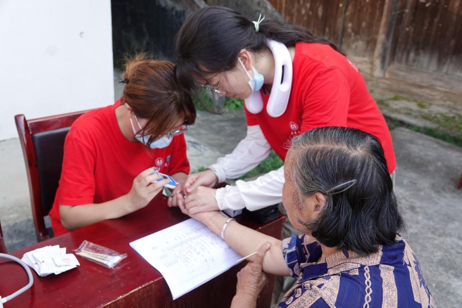 团队成员在为老年人测量血糖