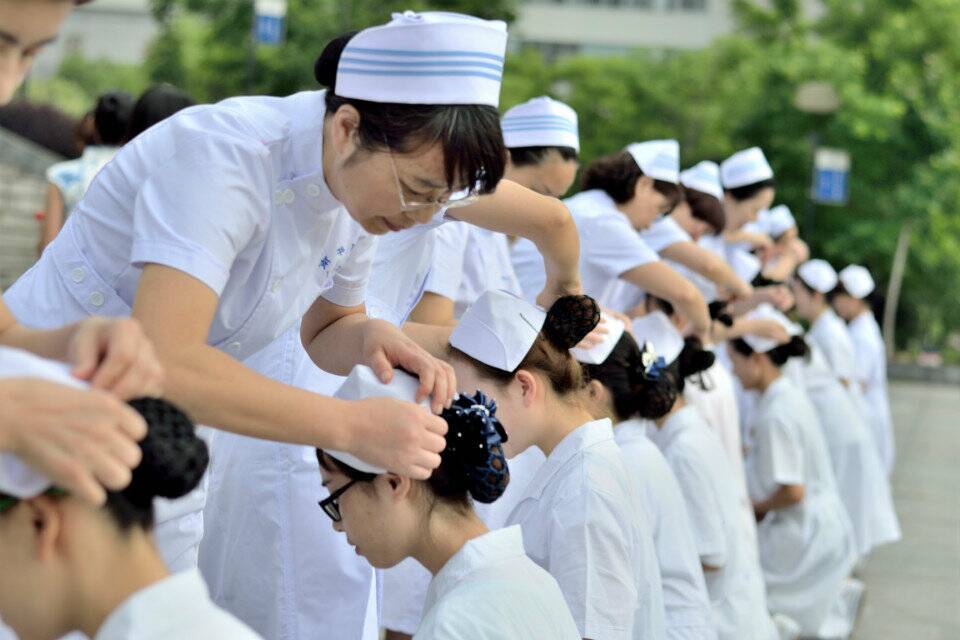 5月9日上午,护理学院60名身着白色护士服,头戴燕尾帽的学生在南华广场开辟了一条圣洁庄严的护理人之路,迎毕业生入场参加授帽仪式,并举行护理急救技能操作展。