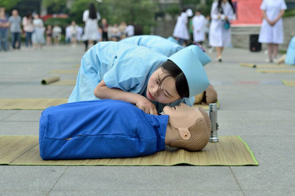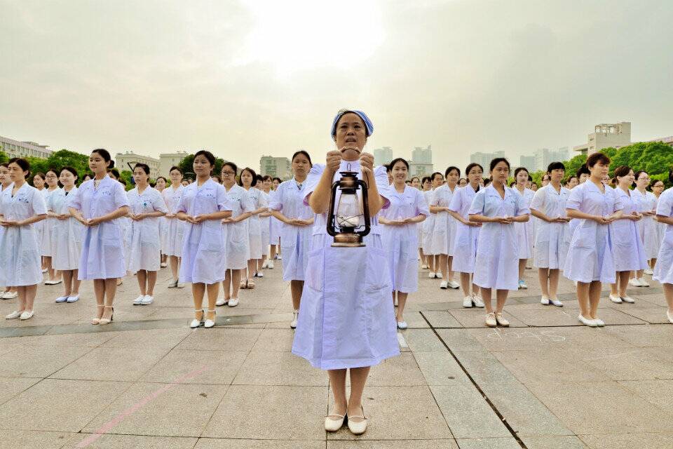 在“提灯女神”段功香的带领下,护理学院取得护士职业资格证的120名应届本科毕业生手捧蜡烛被老师授戴护士帽并进行庄严宣誓,立志践行“燃烧自己照亮他人”的南丁格尔精神,实现救死扶伤人道主义,服务社会。随即,20名优秀本科生、研究生现场展示心肺复苏心肺复苏等急救技能并模拟情景进行急救知识普及,在传播急救文化的同时,纪念汶川地震7周年,进一步弘扬抗震救灾精神。