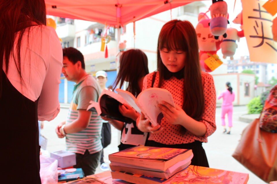 “我们每卖出5块钱,就离给贫困小学建图书馆又进了一步,去年我们的义卖活动可是为二塘小学建了一个图书室呢!”志愿者李伟说道。