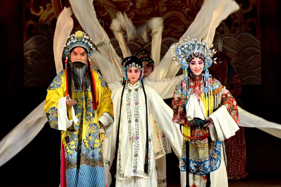 “树上的鸟儿成双对,绿水青山绽笑颜……”戏曲联唱中,一段熟悉的黄梅戏选段《天仙配》一开场就让观众走进了一个古风古韵的文化世界,接着豫剧《花木兰》、越剧《天下掉下个林妹妹》、京剧《智取威虎山》依次登台亮相,让观众大饱眼耳之福。