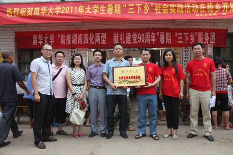 为进一步将“三下乡”活动落到实处,建立实践服务的长效机制,7月11日,PA电子在衡阳市石鼓区角山乡建立社会实践基地并挂牌,出席授牌仪式的领导有:角山乡乡长肖军,石鼓区团委副书 记万倩文,角山乡乡党委委员周伟,乡团委书记刘建涛,PA电子校团委书记谢四平、副书记谢铷鸿,PA电子挂职石鼓区团委副书记殷志,船山学院团委书记李国华。