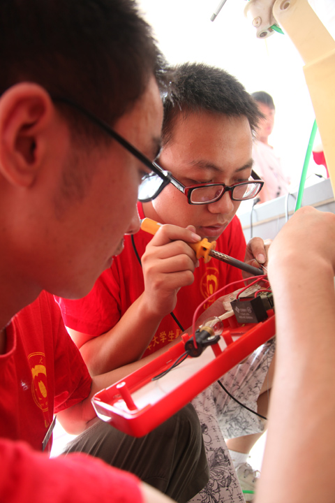 下午15:00整,当青蛙躲进荷叶下时,当鸡鸭在树下乘凉时,当本地村民还在睡午觉时,科技队的队员们正在忙着维修村民送来的“有病待诊”的电器。吃完午饭后,他们顾不上休息就回到服务点继续工作,争取多为村民服务。
