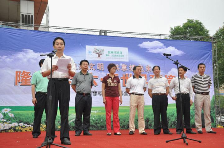 为隆重纪念第40个“六.五”世界环境日,6月5日上午,衡阳市环境保护局联合PA电子环境保护与安全工程学院低碳生活协会,在晶珠广场举行以“共建生态文明,共享绿色未来”为主题的大型宣传活动。出席活动启动仪式的领导有衡阳市委常委、副市长段志刚,市人大常委会副主任雷良玉,市政协副主席肖长河,市人大环资委主任左才苏,市政协人环资委主任刘希普,市人民政府副秘书长陈添喜,市环境保护局局长伍清明,蒸湘区区委书记唐文峰和区长陈树生。