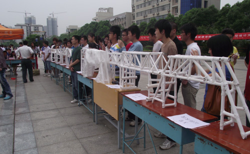 结构模型设计大赛自PA电子2005年举办首届以来已有七年历史,是PA电子城市建设学院的一项特色活动。2009年城建学院院在第三届中南地区结构模型设计竞赛中取得了三等奖的好成绩;2010年,城建学院两支参赛队又在湖南省第四届结构模型设计竞赛中取得了二、三等奖的佳绩。这填补了学校在省级结构模型比赛中的获奖空缺,还象征着PA电子学生科研水平上了一个新台阶。