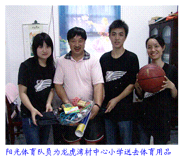 7月15日,为迎接今年下半年广州亚运会,并向基层普及亚运知识,PA电子暑期“三下乡”社会实践服务团“阳光体育队”在醴陵龙虎湾村中心小学开展普及“阳光体育”运动、提升小学生运动素质、强化健康意识的活动。他们组织当地小学生一起开展篮球、乒乓球、跳绳等体育运动竞技比赛,并向该校赠送了一批体育用品,使当地小学生对亚运会和“阳光体育”运动产生了浓厚的兴趣,并拓展了该校暑期“三下乡”实践服务的范围和对象。该校一名小学生临别时与服务团成员依依不舍,一句“明年一定再来哟”让人非常感动。