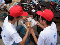 当医疗队和科技维修队刚到服务点,立即被等候多时的村民们围住,医生们热情地逐一给他们诊治,并免费送给他们药品,耐心细致地告诉他们正确使用药品的方法。维修队的志愿者们用娴熟的维修技术,修好了村民们一台台破损的电器。看见自己的电视机又出现了久违的图像后,来自厚新村的杨大叔乐呵呵地笑了。“用了十几年了,真的舍不得换掉,光拆个外壳就要十几元,没想到你们不仅不要钱,还这么快就修好了,真是太感谢你们了!”活动期间,当看见喜笑颜开的村民们满意的回家后,杨荣村党委书记李明感慨道:“农村真的太需要国家号召的这种 “三下乡”服务基层的政策了。给村民带来了最实际的利益,你们大学生这种无私奉献的精神让人感动,太感谢你们了!”
