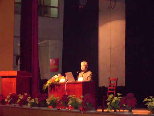 由我校副校长罗成翼主持,吴瑞华教授(著名教育心理学家)主讲的中国科协“科普报告希望行”衡阳报告会于3月31日下午2:30在南校大礼堂隆重开幕。湖南省科技处代表,衡阳市科技处李梅、唐华明,PA电子科技处负责人,各院校老师,校学生科协、校学生会相关负责人及各院学生代表参加了本次报告会。