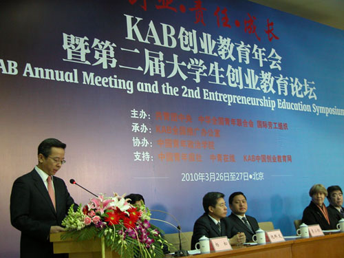 开幕式上,团中央书记处书记卢雍政在会上作了重要讲话。他指出,就业创业教育是一种专业化、系统化、社会化的、开放的素质教育形式,不是简单的思想教育或观念引导,它有全面科学的内涵。它的本质是实践教育,主要内容是观念引导、技能培养,基本方法是实现学校第二课堂与社会的有效对接。大学生就业创业教育是针对大学生的服务项目,具备三个特征:首先,就业创业教育是一种素质教育,它是素质教育的一个重要方面,着力培养学生的实践能力、创新思维以及提高学生的创新意识和创业精神;其次,就业创业教育是一种职业生涯教育,它可以帮助学生了解劳动力市场供需关系,树立正确的就业观和创业观,培养学生的职业素养,做好就业创业的心理准备和职业生涯规划;第三,就业创业教育是一种开放互融式教育,它融学校教育与社会教育于一体,集课程教育与实践教育于一身,不同于一般常规课程的教学,它以能力培养为目的,以学生为中心,采用参与式教学方法,与各种实践活动密切相关。卢雍政强调,KAB项目下一阶段的主要任务是推动基础课程体系的本土化,完善创业教育师资的培训体系以及进一步扩大项目在高校的覆盖面。他要求各级共青团组织要充分运用KAB项目的平台,推动各高校在创业教育的课程体系建设、师资队伍培养、实践项目设计和交流平台搭建等领域加强探索,努力构建一个服务大学生就业创业全过程的工作体系。