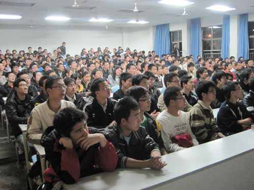 讲座中,韩先生把自己成功经历以及对职业生涯的规划向同学们娓娓道来。他认为人生规划总体分为四个方面:一、认识时间坐标轴,主要是学会总结过去,把握现在,展望未来;二、找回自己,曾经的我们或许有许多美丽,我们用现在的青春去拥抱未来;三、行业,它是一个人成功的加速器;四、机遇,生活中我们要完善自己的人格,习惯决定命运,细节决定成败。韩先生把他的成功经验淋漓尽致的表达出来,给在座同学以深刻启发。 讲座最后韩先生还与学生进行互动,为同学们解疑答惑。