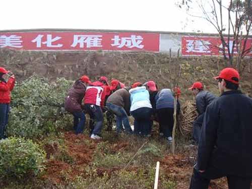 在温暖的三月天,青年志愿者们动手植树,加快了衡阳绿色生态城市的建设,在学习实践科学发展观上跨进了一大步。