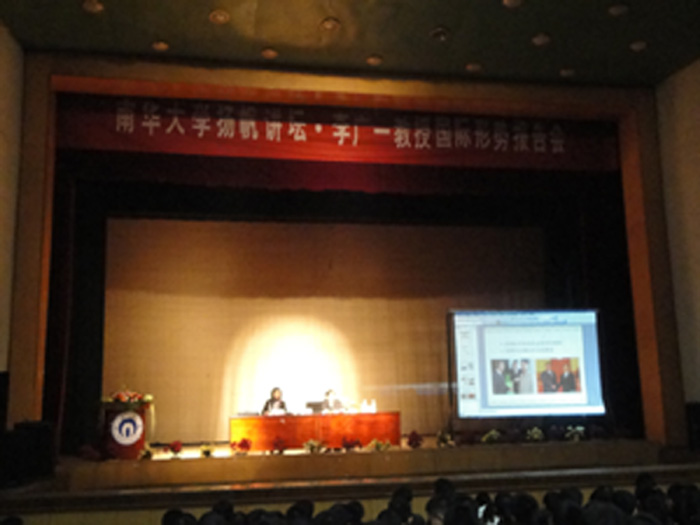 上午场报告会以“中国在世界新格局中的国际地位与作用”为主题。李广一教授首先简单概括了国际体系经历的两次大演变的概况特点,并着重分析了当前国际体系正面临的第三次演变。接着,他详细地介绍2008年发生的显示中国已成为国际体系的重要角色的四件大事:哥俄战争、北京奥运会、金融危机、印度孟买大规模恐怖袭击,他指出在这四件事情上我国充分向世界证明了综合国力,已经向世界强国迈进。随后,他从中国的经济实力显著上升、军事和科技的持续上升、世界其他主要力量持续下降、金融危机以来中国国际地位不降反升和中国提出的“和平发展”战略这五个方面分析了我国国际地位提升的原因。最后,他阐述了我国国际地位提升与国家身份变化后所面临的三大机遇和四大挑战。