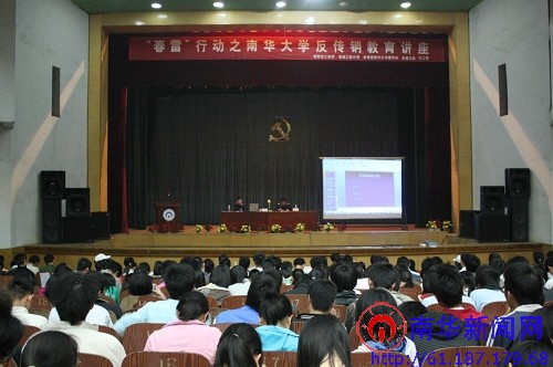 晚上8点,南校大礼堂人潮涌动,座无虚席。谢铷鸿老师首先致开幕词,她指出,此次讲座不仅有利于同学们的健康成长,维护了校园安定有序,还坚定了同学们“远离传销,抵制传销”的信念。