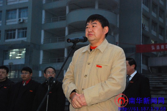 医学院邓飞鸿作为学生代表发言,她表达了弘扬南华精神,努力学习科学文化知识,立志成才报国,以实际行动迎接国庆60周年的决心和信心。