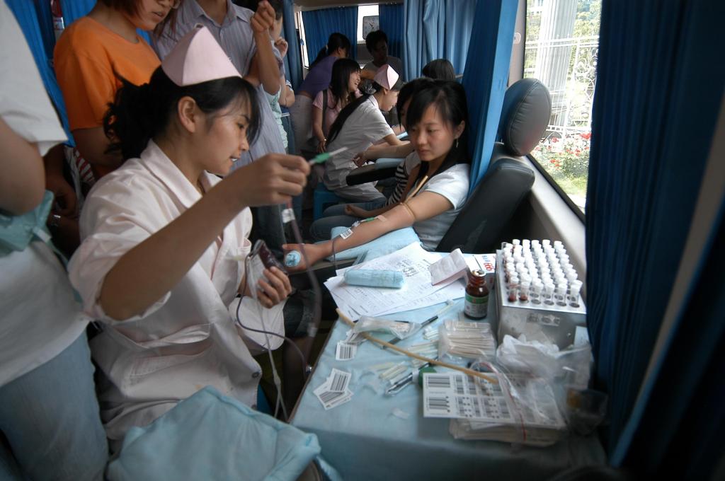 当得知灾区血库告急后,南华青年积极响应,校团委主动与衡阳市中心血站联系,把献血车请进了学校。5月13日起,南华青年在献血车前排起了长队,争先恐后地走上了献血车,为灾区人民送上一腔热血,一片真情。据统计,5月13日下午有130多名学生献血,达到了以往全天献血量的两倍。14日下午,衡阳市红十字会社会服务科科长致电校团委,对南华青年的捐助表示感谢,并解释说,目前血库血源充足,青年学生只要登记自己的血型等相关资料即可,等待需要时将与之联系。