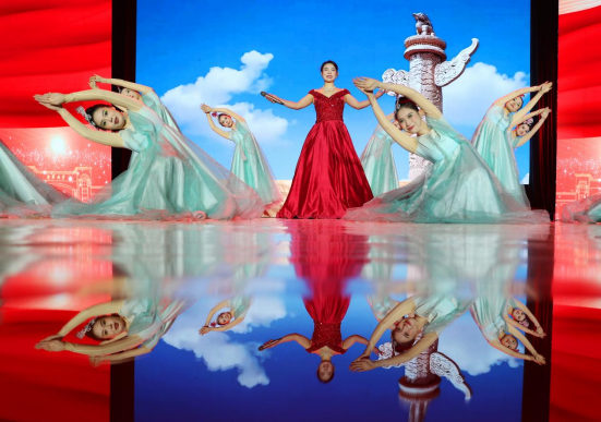 晚会在大学生艺术团民乐团热烈磅礴的新民乐中拉开序幕,《赛马》《金蛇狂舞》等乐曲用昂扬的旋律,渲染了喜迎新年的欢腾气氛。群舞《富春》用江南女子婉曲柔媚的形态,勾勒出祖国山川河流的意境之美,街舞《山河图》的舞者们则用刚劲有力的舞姿、富有节奏感的旋转,描绘着山河的壮美轮廓及山河间的风云变幻。美轮美奂的T台秀《同心赴未来》,扣人心弦的魔术表演《希望之光》,引发现场观众阵阵惊叹。辅导员职业发展协会带来音乐剧《四季予你》,艺术再现了辅导员与青年学子“打成一片”的工作日常及用心育人成效。大合唱《追寻》《如愿》带领现场观众一起回眸历史足迹,感悟时代发展,凝聚继往开来的磅礴力量。歌伴舞《不忘初心》中,歌者用动人的歌声彰显对祖国的坚定热爱,舞者用柔美的舞姿诉说着一个又一个感人的故事,提醒着人们要时刻牢记初心和来时的路。舞蹈《马铃摇响幸福歌》用欢快的节奏瞬间点燃全场热情,舞者们身着绚丽的服饰,用优美的舞姿讲述着新时代的幸福故事。《红旗飘飘》《真心英雄》《最美的太阳》《怒放的生命》等歌曲联唱,唱出了对祖国坚定的爱,也唱出了南华人奋勇向前、共创美好未来的决心与志向。