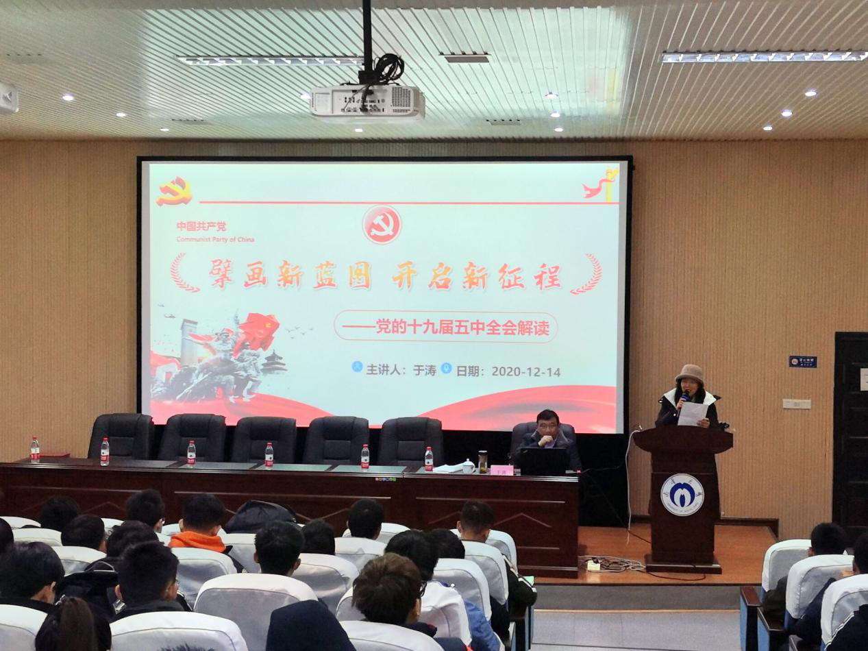2020年12月14日下午三点,土木工程学院“擘画新蓝图,开启新时代”党的十九届五中全会解读专题思想政治课在核技术虚拟仿真实验中心举行。本次讲座由学校党委委员、博士生导师于涛老师主讲,学院党委副书记唐素芝老师主持。