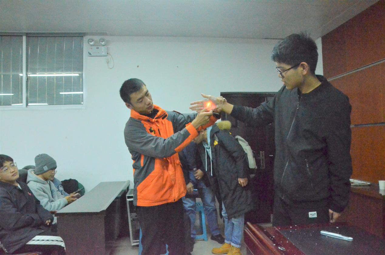 李教官提醒在场的每个人要关注身边时刻存在着的安全隐患,例如煤气泄漏、电线老化、漏电、汽车火灾等,在这些意外发生前应该如何进行预防,当这些意想不到的灾难发生时,应如何进行自救,如何在保护自己生命的同时又能将损失降到最低。李教官还向大家讲解了灭火器械的正确使用方法。