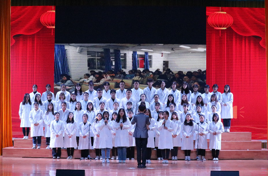最后,陈晓坚书记和蒋穗斌老师共同为大家领唱《同一首歌》,护理学院全体师生合唱,歌声在礼堂中回荡,为迎新会画上了圆满的句号。