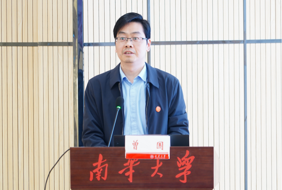 大会开始,衡阳医学院党务常务副书记曾国致辞。曾国书记在致辞中通过衡医16级学霸宿舍的热搜引出社会对于学校培养学生的高度关注,提出:“在学院统筹和学院附属医院的大力支持之下,学院要积极开展一系列的学科与专业相结合、基础与临床相结合的学生活动。学生专业社团要真正做到成立‘一个’,做好‘一个’,发挥好‘一个’的作用,丰富同学们的校园文化生活,在师生的共同努力之下为学校高水平大学建设做出新成效。”