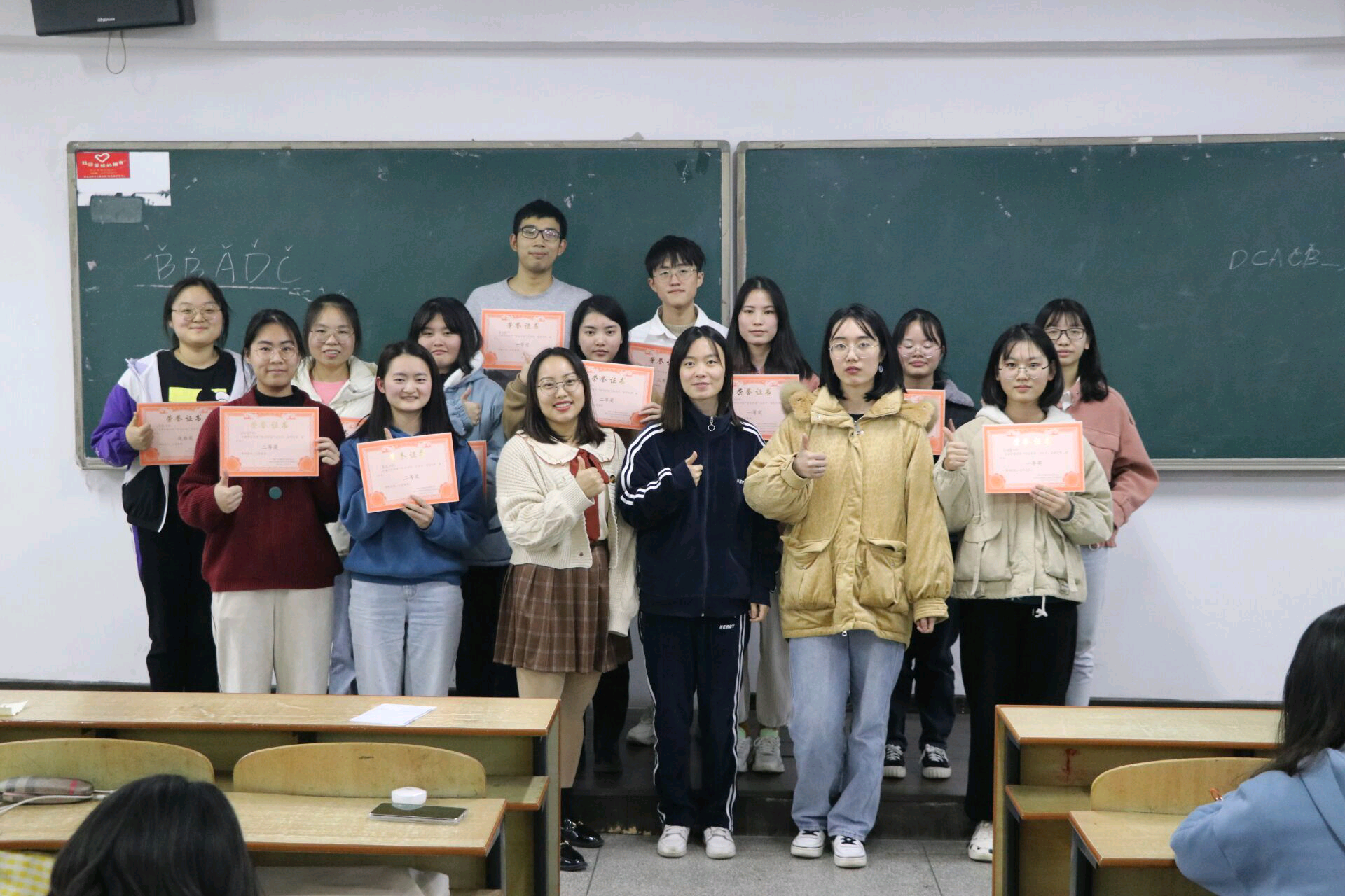 在第一环节的知识竞答比赛中,选手们都是有备而来,A组势如破竹,拔得头筹,而B组则沉着冷静,紧跟其后。接着进行的是观众互动环节——你画我猜。每轮选出两名观众进行游戏,根据幻灯片猜出一个医学名词。在一阵阵掌声中,幸运观众得到了奖品,车轮战也拉开了帷幕。在激烈的比赛过后,主持人播放了一段医学视频,通过视频,在场人员了解到了一些关于医学的谬论,也更意识到医学生的使命与职责。最终经过数据统计,A组同学夺得了本次比赛的冠军,所有参赛选手一齐走上讲台,领取奖励。