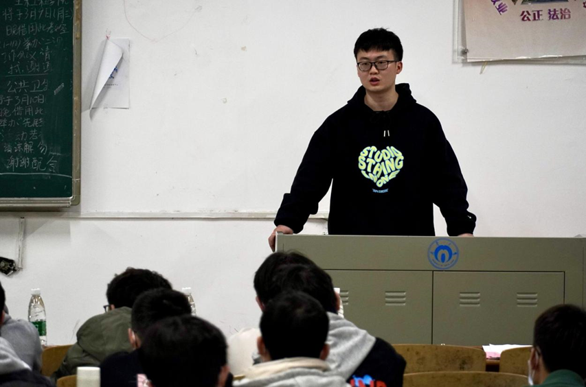 会议伊始,主持人张钞对会议内容和流程作简要介绍。接着,张钞提供各年级二课达标率图表并对我院第二课堂数据情况作简要说明。紧接着,院团委副书记罗贵庭对青年大学习学习情况进行简要汇报。听取情况汇报后,吴旦老师发言,对各班班委提出要求。他强调青年大学习以及第二课堂活动的重要性,希望同学们以德智体美劳全面发展为根本目标;此外,他还要求各班班长要有责任和担当,将会议精神落实到班级每一位同学。