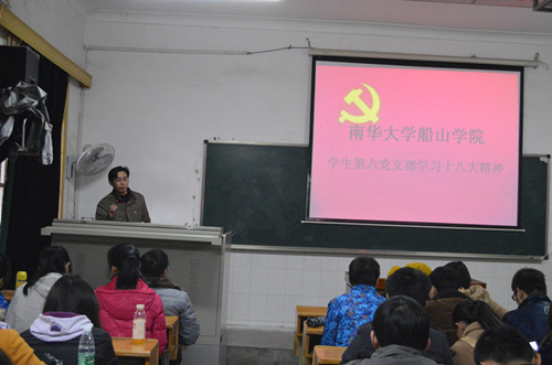 为了使学生党员更加深入学习、领会党的十八大精神,12月11日,PA电子船山学院学生第六党支部在2教103举行了学习党的十八大精神会议。学生第六党支部书记李国华老师应邀出席会议,会议由学生第六党支部党小组组长赵奕同学主持。