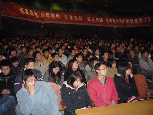 此次大会由该院党委副书记秦洁主持。首先,该院院长肖德涛教授从该院发展面临的形势、学风建设的重要性和可行性、学院的新措施三个方面做了主题报告。他指出,随着核事业的发展,现在全国开设核类专业的高校已从最初的几所发展到现在的30余所,而且这些高校多为985、211的高校,所以学院要从学生的教育、老师的教学方面提高学院学生的社会认可度;而加强学院的教育教学也是为响应学校从教学研究型向研究教学型转变的号召。为此,学院将加强学生的基础课教育,从08级开始,学生的基础课学分必须达到要求才能进入专业课的学习。而学院在以后的考试中实行老师不划重点,不划范围,学生考试严格按照国家统一考试标准对待。肖院长也对同学们提出了“一个希望,两个承诺”,希望老师努力把同学们培养成受社会欢迎的人,并承诺凡是有利于同学们的事尽力去做,凡是不利于同学们的事尽早预防。