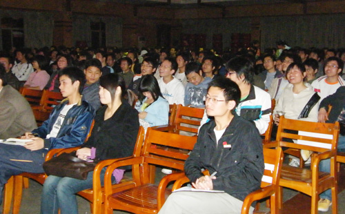 在随后的讲座中,雷飞燕老师用她丰富的专业经验从压力、情绪及压力的释放三方面为大家作了详细讲解,同时结合当前金融危机下严峻的就业形势,引导同学们树立正确的价值观,用适当的的方式缓解压力。在讲座过程中,现场同学就恋爱、社交等方面的困惑进行提问,雷老师细致而耐心的解答更是博得了同学们雷鸣般的掌声。最后,讲座在同学们轻松的笑容中圆满结束。