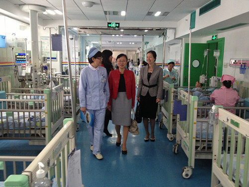 护理学院廖力院长简要说明了此次交流的目的。在南华现有的涉外护理和助产护理方向上,船山学院想增设儿科护理方向,就如何进行儿科护理方向课程设置,双方进行了讨论交流。此外,在我院护理学专业硕士点的申报上,省儿童医院表示愿意给予支持和指导。最后,在省儿童医院领导的陪同下,我院领导老师参观了医院的危重病房和监护病房。