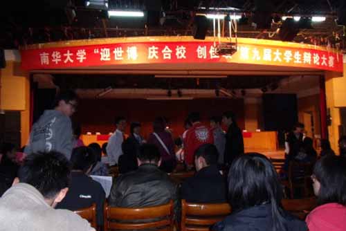 化学化工学院作为正方,坚持“廉洁作风的形成靠自律”,核科学技术学院则认为“廉洁作风的形成靠他律”。辩论按照开篇立论、攻辩、自由辩论、总结陈词、观众互动和评委评议等环节等进行。双方辩手实力旗鼓相当,激情昂扬的陈辞,诙谐幽默的比喻,盛气凌人的语调使立论框架得到较准确的把握,直击命题的要害,辩论现场座无虚席,赛场气氛紧张而又热烈。