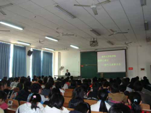 心理健康教育工作一直受到我院领导的重视并给予了大力支持。此次大会由阳志成老师主持。首先,刘书记为大会致辞。刘书记充分肯定了我院在心理健康教育方面取得的成就,同时指出我院的心理健康教育还需作出更大的努力。在此,刘书记对我院的心理健康教育工作提出五点要求:一、进一步提高对心理健康教育工作的认识;二、要加强心理健康知识的日常宣传工作;三、辅导员老师要关注学生,走进学生;四、坚持以学生为本的理念;五、加强对我院各班心理委员的培训。接着,心理专干徐婵娟老师从我院心理健康教育的特点和工作方式、我院心理健康教育工作的侧重点、09年度我院开展的关于心理健康教育工作方面的活动三个方面总结了我院2009年度的心理健康教育工作。随后,分团委学生会心理部部长周泽芝同学就我院心理部2010年的工作做了详尽的计划报告。 最后,张书记结合大学生的实际案例深入浅出就适应大学生活、回归心理、“六心七戒”为大家带来一场心理健康教育的听觉盛宴。会上,医学院分团委学生会心理部还为大家带来了精彩的心理剧《心相托 情满天》,从多个方面把大学生的心理问题表现得淋漓尽致。
