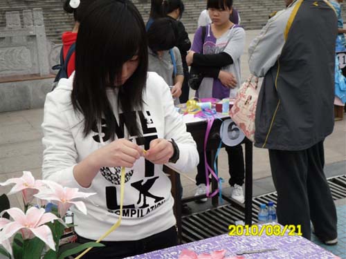 3月21日上午九时,由PA电子学生会主办,外国语学院学生分会承办的第五届女生文化节——手工工艺品大赛决赛在南华广场举行。应邀参加此次活动的嘉宾评委有校学生会主席团及各学院女生部部长。
