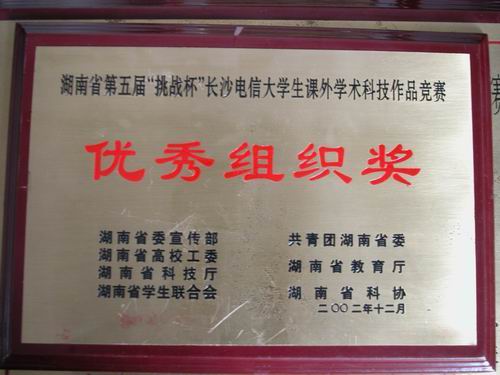 湖南省第五届大学生课外学术科技作品竞赛优秀组织奖
