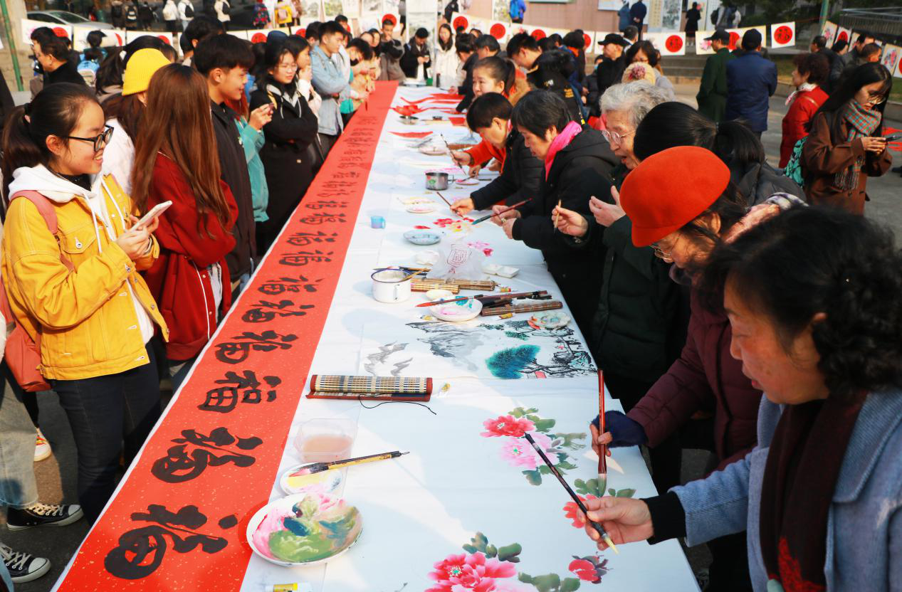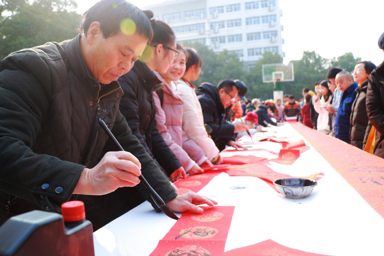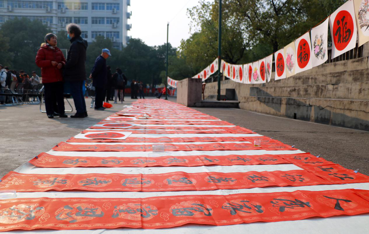 为了迎接新一年的到来,PA电子肖月生老师举办了“100福字迎新年”书画展。12月25日上午,于PA电子团委楼旁空地开展了此次活动,活动现场众多老师亲手题字作画,写对联,并把自己得意的作品展示出来供大家欣赏。一时间吸引了许多同学驻足参与,场面热闹非凡。