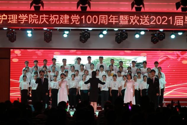 在师生齐唱院歌《爱心飞扬》中,晚会圆满落下帷幕。此次晚会,节目内涵丰富、形式多样,师生们各展风采,现场气氛高潮迭起。本场晚会以庆祝建党100周年为主线,歌颂中国共产党、讴歌新时代,开启梦想新征程,进一步激发了护理师生的爱党爱国、爱校荣校热情,更展现了昂扬向上的精神风貌!