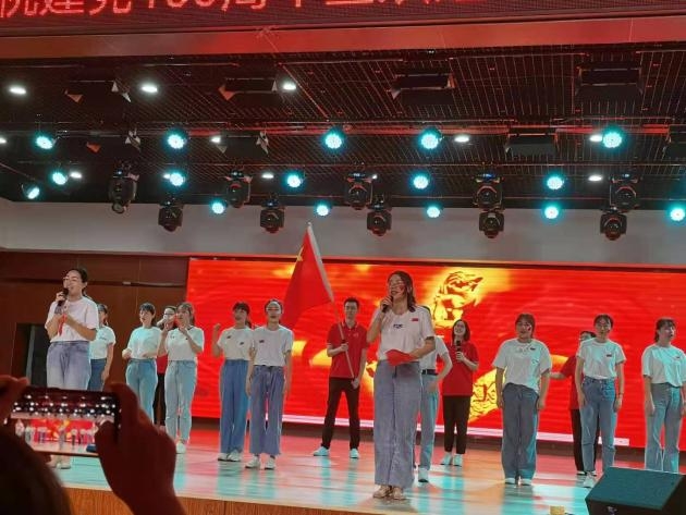 在节目中场环节,由李翼老师带领学院2021年新发展党员进行入党宣誓;院领导分别为“颂歌献给党”主题征文比赛、第十届中国大学生医学技术技能大赛护理学专业赛道全国总决赛获奖师生颁奖、绶带;2017级考研学子代表上台告白,现场温馨感人。