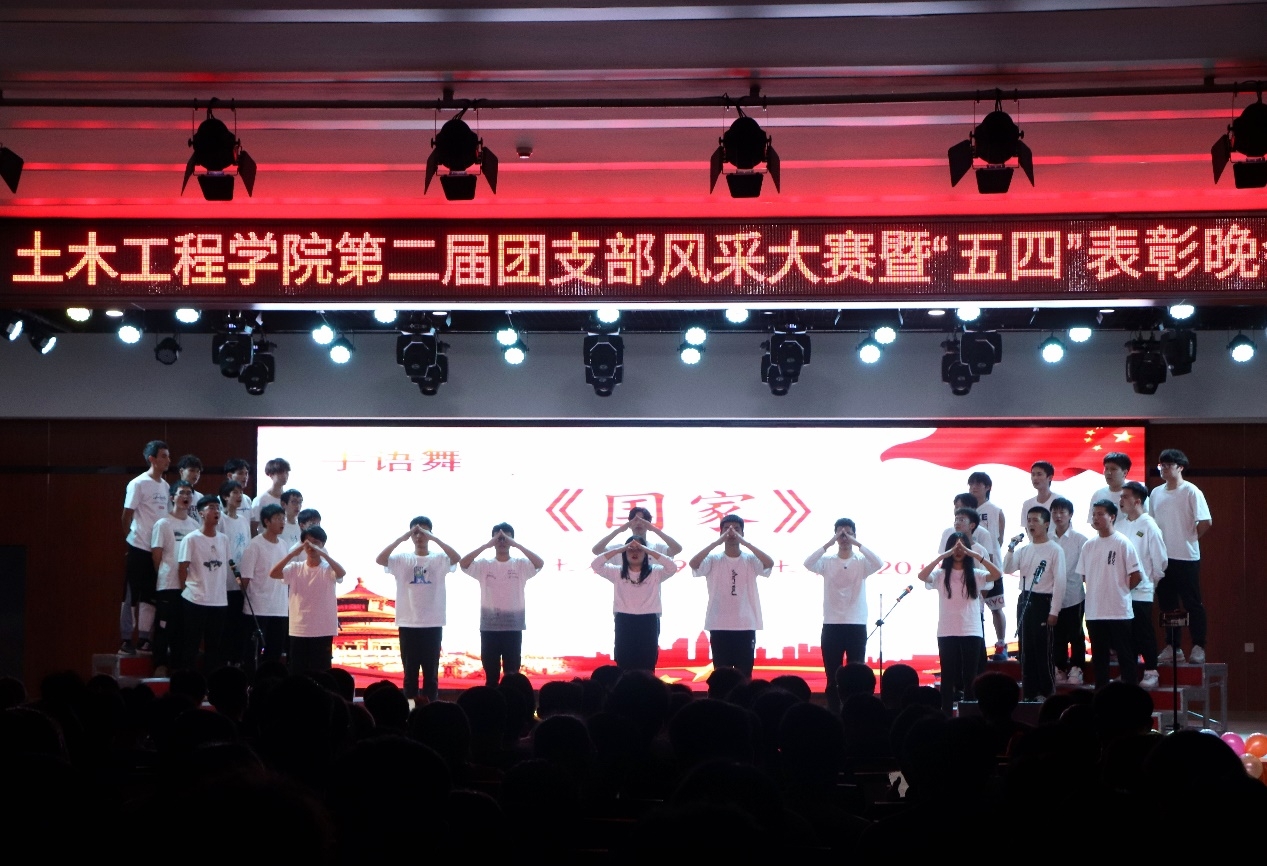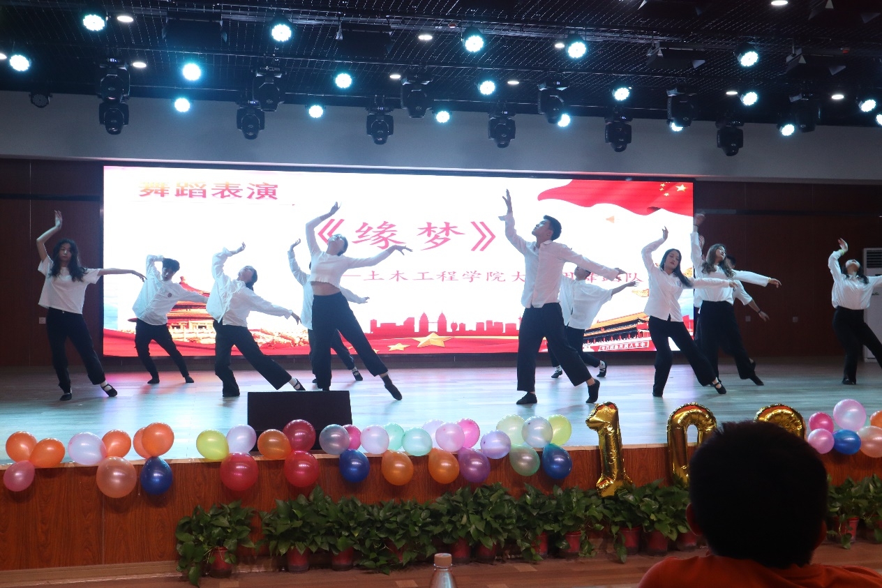 晚会共分为三个篇章。晚会上篇,同学们用精心准备的节目点燃整个会场。其中,土木2009班的朗诵表演《少年中国说》,大艺团舞蹈队舞蹈表演《缘梦》、土木2019班和土木2020班的手语操《国家》、土木2003班的合唱《骄傲的少年》诠释了奋斗拼搏的激情,他们的精彩表演令在场的每一位同学都沉浸其中。土木2005班带来的话剧《百年故事》讲述了战争时代知识分子们的奋力抵抗及和平时代为共产主义奋斗终身的故事。最后校吉他协会的乐队表演《无名之辈》展现了年轻一代的奋进拼搏的精神,他们的倾情演绎获得了大家的热烈掌声。