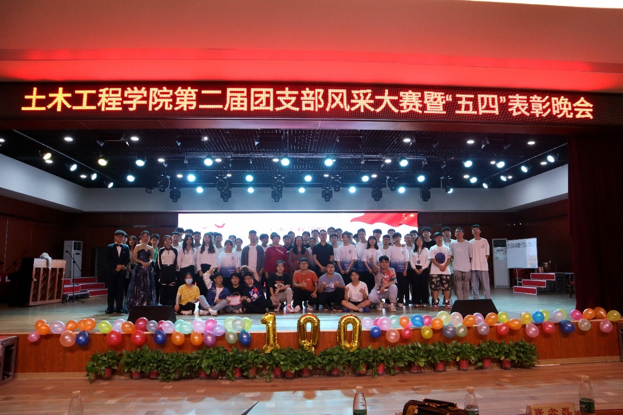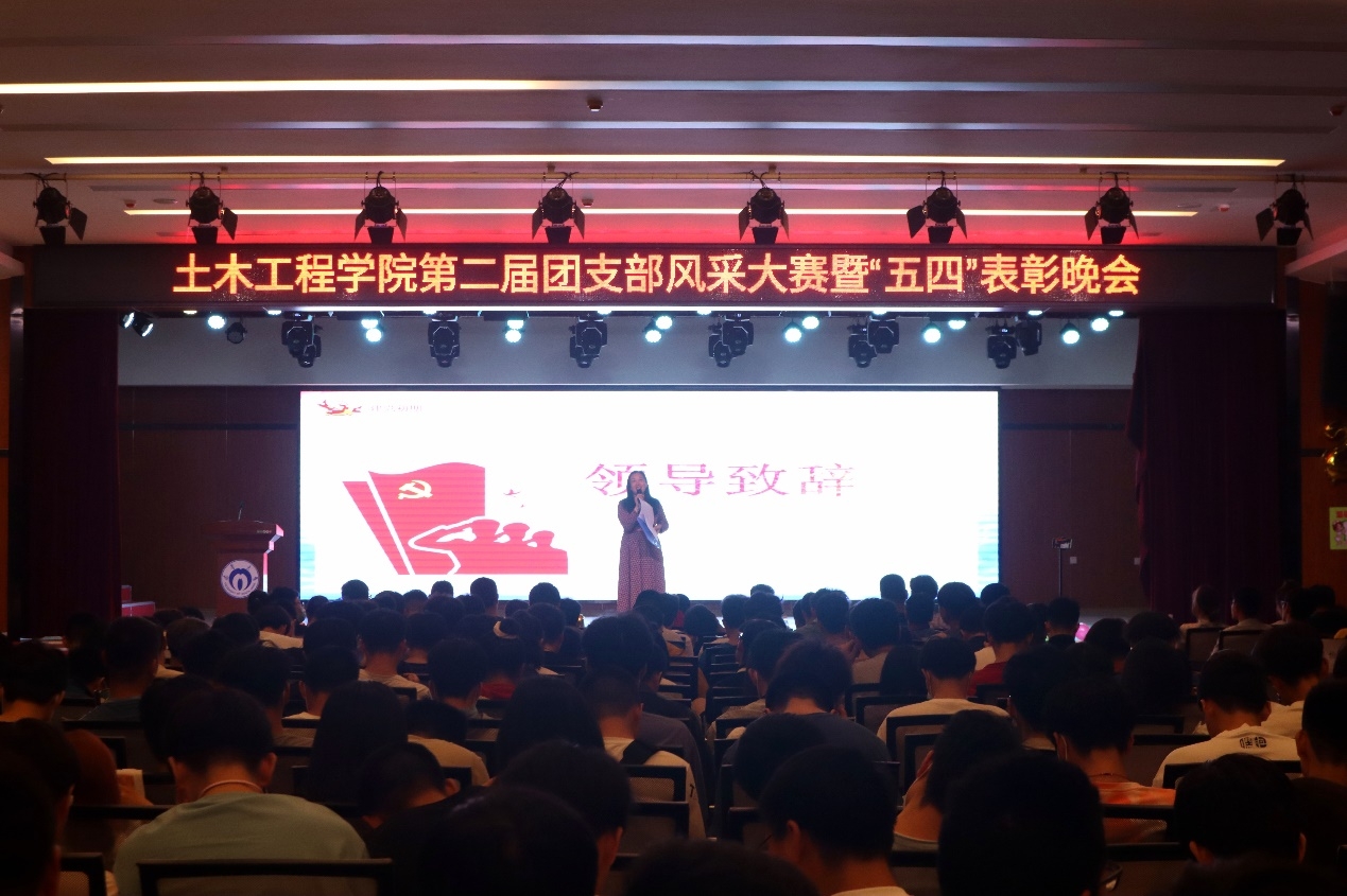 2021年5月27日晚,“砥砺奋进新征程•献礼建党一百年”土木工程学院第二届团支部风采大赛暨“五四”表彰晚会于北校食堂学生活动中心举行。土木工程学院党委副书记唐素芝、学工室主任李翠新、辅导员老师贺淑珍、彭兴明、刘华、邓都,团委书记张孝磊和主席团部分成员共同出席本次活动,晚会由袁鲁宁、刘怡林同学主持。