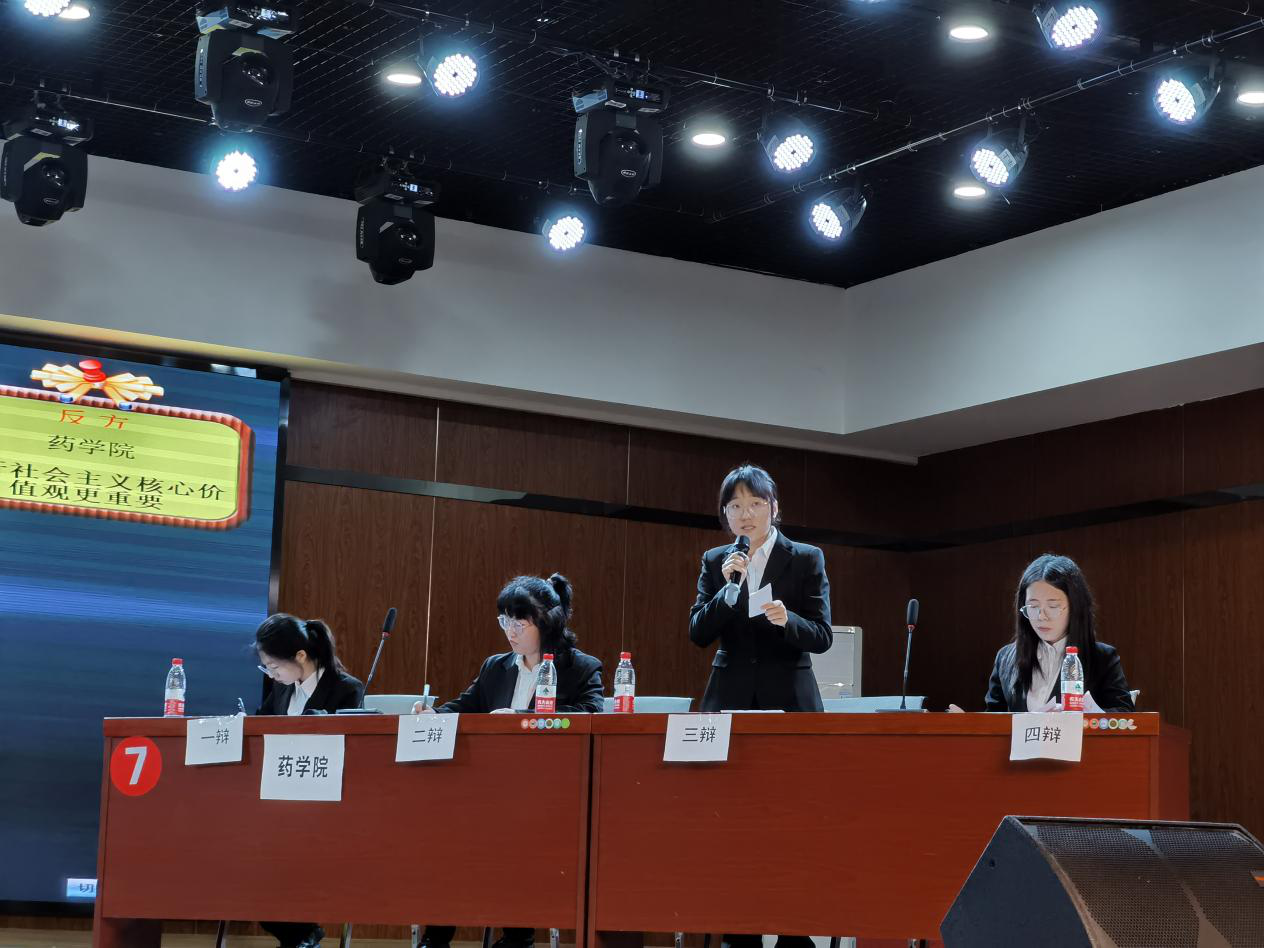 五陵年少金市东,银鞍白马度春风。在这最美人间四月天里,拉开了由我校共青团主办的“践行社会主义核心价值观”第十九届大学生辩论赛的序幕,本届辩论赛共有18支队伍参加比赛。2021413日晚,首场比赛于求是园学生活动中心举行。正反双方围绕弘扬/践行社会主义核心价值观更重要展开激烈辩论。