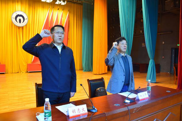 会议第三项是禁毒宣誓活动。礼堂内,所有参会人员高举右拳与领誓人庄严宣誓,坚定浑厚的宣誓声回荡盘旋。