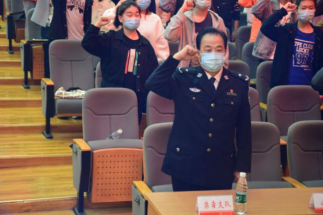 随后,张爱国从毒品之名、毒品之害、涉毒之祸、防毒之策四个方面入手,讲解了毒品的相关知识,加深了在场的师生对有关毒品的种类、特征以及危害的了解。“七不”与“六要”的防毒之策更是明确了高校及其学子面对毒品时应做的举措。“我们是在一个好的时代,要系好我们人生中的第一粒扣子,走好第一步。”接着,廖猜差采用ppt与视频相结合的方式,生动形象地向在座师生展示了电信网络诈骗的含义以及其多种的犯罪手段和防范方法,深度普及电信网络诈骗的知识。