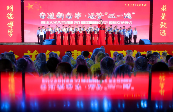 晚会在全体合唱《南华校歌》的歌声中落下帷幕。晚会虽结束,但大家依然非常激动,来自船山学院的辅导员同时兼任本次朗诵负责人的张力感言:“能成为学校合并组建20周年建校62年的见证参与者,我感到无比幸运与光荣,未来我也将与南华一起奋进,逐梦双一流!”作为南华建设发展历程中的一员、已退休教师赵学兰和李智超,晚会后为南华送上了自己最虔诚的祝愿,“希望南华学子遵守校训,积极向上,愿南华的明天越来越好!”化学化工制药181班学生王泽楠满怀自豪地说:“晚会太精彩了,让我有种春晚即视感。我为自己是一名南华人感到无比的骄傲,我将时刻铭记南华精神,不忘初心,砥砺前行,努力为南华更美好的明天添砖加瓦。”