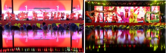 大学生艺术团与体育学院龙狮队联袂演出《丰收锣鼓》