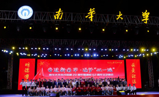 当晚,“笑满三湘”湖南省文艺志愿服务团的文艺志愿者们也走进南华送演出。晚会以“奋进新南华·逐梦‘双一流’”为主题,湖南省文联、湖南省美术家协会等相关领导、全体在家校领导与校友代表、社会各界人士、师生代表等总计5千余人欢聚一堂,共享了一场精彩绝伦的视听盛宴。近7万人通过官方微博、官方抖音号线上观看本次校庆晚会直播。